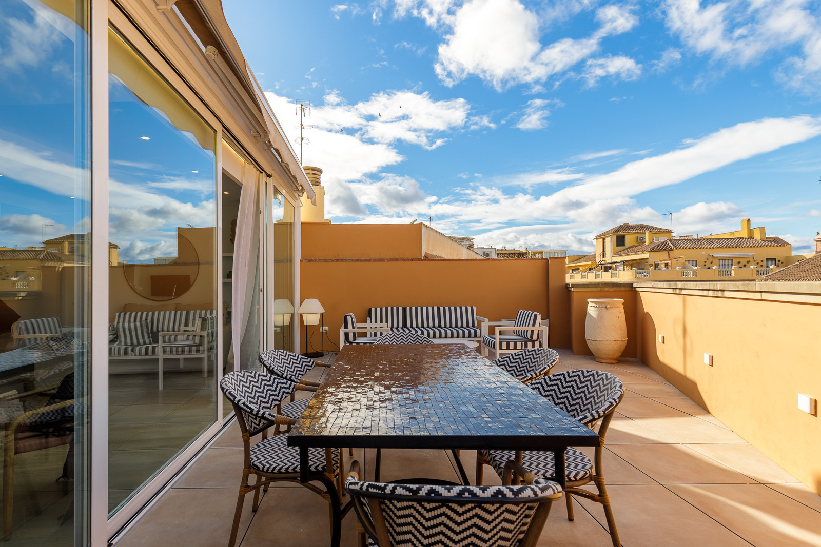 Esta amplia residencia de tres dormitorios y dos baños ofrece una combinación perfecta de sofisticación y calidez. Su diseño interior une el confort contemporáneo con el carácter sutil andaluz, realzado por acabados de alta calidad y detalles decorativos cuidadosamente elegidos. La luminosa zona de estar se abre a una terraza privada, un espacio íntimo para disfrutar del clima soleado de Málaga, ideal para desayunos tranquilos o atardeceres relajados.