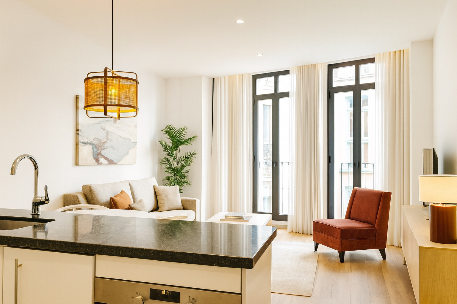 Bathed in natural light, each space has been thoughtfully designed to create an atmosphere of calm and refinement. The living area offers a welcoming setting to relax after a day of exploring the city, while the bedroom ensures an intimate and restful experience. Every detail, from the carefully selected décor to the soft textures and contemporary touches, reflects our dedication to comfort and style.